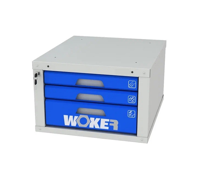 Тумба малая Woker Pro 03 предназначена для установки на верстаки серии Woker. Полезный размер ящика: (ШхГ) 459х612 мм. В тумбу установлен единый замок запирания всех ящиков, секретностью 2000 комбинаций (2 ключа в комплекте). Цвет: корпус - серый Ral 7035, лицевая панель тумбы Ral 5005